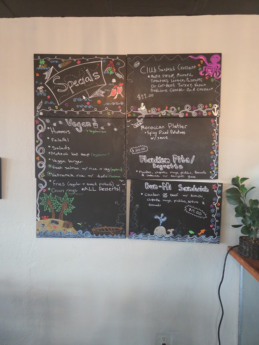 Cream cheese , Tomato, Arugula, red onions and pickles on the side timeless classic. melted vegan cheese, coleslaw, fresh onion, pistachio pesto honey mustard and sauerkraut on the side.